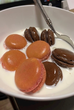 こんばんは🌛 あゆです🌼 この前載せた マカロンシリアル ローソンで冷凍されてる マカロンと牛乳買って 実際に食べてみました!😋 あっという間に ぺろりでした