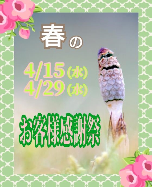 🌟🌸【お客様感謝祭】🌱🌟4/15(水)・29(水)開催します⭐