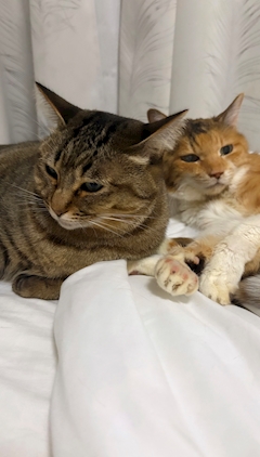 こんにちは♡ 早速ですがうちの猫ちゃんたちの珍しい仲良しショット🐱 普段すごい仲良いわけじゃないからこの距離感でいるの奇跡🐱✨✨ 猫繋がりでこの前お散歩してたら猫ちゃん見つけたの🐈 お外で飼われてるのかなと最初思ったけど微妙に耳カットが見えるから優しい人が自分のお家に地域猫さん用に寝床を提供してるのかな? 人間だけの世界じゃないから動物にも優しくいたいですね🐈🐶 私は人には冷たいけど😀笑 それではこのへんで!