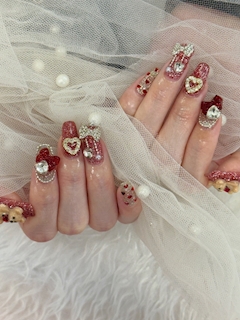 こんばんは💛 さらです❕ ネイルしてきた〜🥺💅 バレンタインネイルをしたのだけど可愛い?🥰🥰 親指に着いてるくまたんがお気に入り🧸笑 今日から1ヶ月相棒です😹よろしく〜🧸✨️ やばいもう眠い😴 では🫶