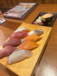 こんばんはー!! クラブアテナ らなです!! つい先日、お客様におすすめされていたや台ずしへ行ってきました〜! まず入ってびっくりしたのは、お寿司の値段とサイドメニューの多さ🤩 お寿司はもちろんですが、からあげやらポテトやらたくさん食べました そして大好きながりもたくさん食べました🤩🤩 この日はノンアルの日だったので、次はガリサワーで挑みたい🤣 本日休みで、明日からまた出勤しています! ではではー!