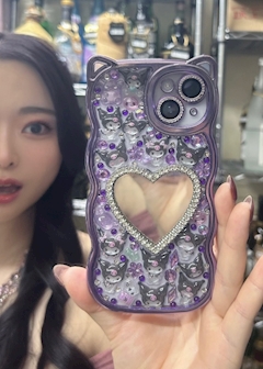 昨日自撮り忘れちゃったからスマホケース自慢⸜(*ˊᗜˋ*)⸝ この前作ったやつの隙間にラインストーン足してみたの! やっぱミチミチの方が可愛い〜( * ॑꒳ ॑*) みんな褒めて〜(((o(*゚▽゚*)o))) では☆