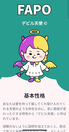 こんばんは🌛 あゆです🌼 最近流行ってる ラブタイプ診断をしてみました🙌 あゆは デビル天使 でした😇 調べてみたら デビル天使(FAPO)は、 まるで天使のように優しく 人を受け入れる一方で、 時には態度が急に変わる ギャップを持っています。 基本的には優しく誠実ですが、 自由さや気まぐれな一面が 顔を出すことで 周囲を振り回すことも。 けれど、それすらも個性であり、 人を惹きつける 大きな魅力となっています。 だそうです、、😅 確かにあってるかもしれない笑 みんなはなんだった〜?