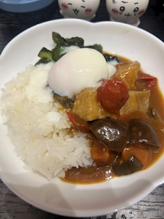 こんにちはー! アテナのゆめかです 🤍 夏カレーみたいなのをつくりました ✨ カレーには温泉卵と福神漬けみたいなのをのせるのがだいすきです 🤍 みなさんはなにをのせるのがすきですか?