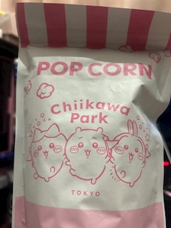 こんにちはー! アテナのゆめかです ᴗ ̫ ᴗ ちいかわパークでかってたポップコーンをたべました ⸝⋆🍿⸝⋆ キャラメル味! いちばん好きな味でおいしかったです ദ്ദി>ᴗ<)🎀✧ みなさんは塩とキャラメルどちらがすきですか??