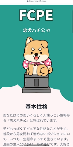 こんにちは♡ 日曜日~🩷 今日はやっとお休みです🥺来週はフル出勤予定なのでゆっくり休もうと思います☺︎ みんなはなにするのかな? ゆっくりしましょうね🫶 最近流行ってるMBTIの恋愛版?をやってみました🩷 私は忠犬ハチ公でした🐶 当たってるのかな? こういう診断系大好き🥺普通のMBTIだと冒険家です☺︎ 陽キャになりたかったなあ😭 https://lovetype16.com/ みんなもやってみて下さい🫶💞 それではこのへんで!