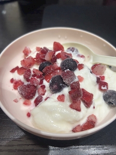 こんにちはー! アテナのゆめかです ᴗ ̫ ᴗ ミックスベリーヨーグルト! ブルーベリーはあんまりすきじゃないけど、それ以外がおいしいです ᴗ ̫ ᴗ おいしくて体にいいので最高です ✊🏻