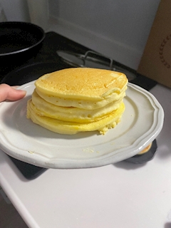おはようございます☀️かすみです🤍👼 手作りおやつ作ったよ〜! じゃじゃん✨ ホットケーキできた🥞🤍 甘いの大好き〜幸せ〜💗 ちなみにクーリッシュつけて食べました 笑笑😛