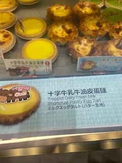 えびワンタン麺もたべてあとは帰国するだけ!! 香港の空港にエッグタルトのお土産あるとの事で最後にお土産を買って帰ることに!✈️ 友達が最初に注文しててまりも写真を撮ってこれとこれ欲しいって注文したの、! タルト受け取って少し歩くとなんか臭うなとおもってたけど気にせず飛行機にのったよ✈️ まあ飛行機に乗ってても臭くてよくよく写真とったやつみたら これは普通のなんだけど 原因はこれでした🥲🥲🥲🥲 ほんとに日本語でドリアンってかいてあるじゃん!! しかも家族で食べようと思って4つかってほんとに臭かった😭 ガソリンの匂いで友達に日本に着いたあとこの話したらずっと飛行機乗ってる時燃料臭くてこの機体大丈夫かなっておもってたみたい😂😂 しかもこのドリアンタルトノーマルより高いし!!😂ほんとショックだった🥲 ひと口食べたけどご想像通りの味だったよ😆 これにて香港編おわりです次はどこ行こうかな〜🥳