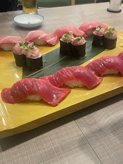 こんばんは ちさとです! お寿司食べてきましたー! お寿司行くと いつも食べるの決まってて マグロネギマグロばっか 食べてます🍣 貝類とか挑戦してみたいですね〜!