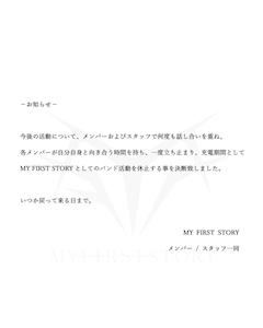 こんばんわ🐶あかりでふ⸜(* ॑꒳ ॑* )⸝ 昨日悲しい出来事があったのです。 あかりの大好きなバンドが活動休止になりました😭😭😭みんな知ってるかな?MY FIRST STORYってバンドなんだけど、昨日豊洲PITでライブしてそれを最後に活動休止に発表になったのです。。。 公式からはこんな感じの発表だったよ⭕️ あかりがマイファスに出会ったのはライブの友達が誘ってくれたのが最初なんだよね!! そっからはほんといろんな出会いだったり、繋がり、曲に救われたり色々あったなぁ。。。 マイファスにはいい思い出しかないから、とっても悲しいお知らせだった。 でも解散ってわけじゃないから活動再開を待ってることにする😤! 本当今までありがとうだぁ。復活楽しみに頑張ります💪 あかりがマイファスに初めていったのは2014/5/11でした!!!!あかりもわかーい◡̈♥︎ 本日はおやすみです!また!!