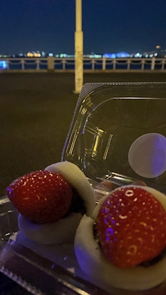 アテナのカリナです この前横浜中華街行ってきたよ〜 小龍包美味しいよね🥟 あと、海見ながら食べたいちご大福が美味しすぎた😆 大福とかお餅好き😊