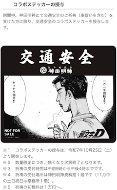 昨日から神田明神とイニシャルDがコラボしてるみたいです😳🫶🏻 ステッカーほしいな。。。パソコンに貼りたいです!🥺 ご祈祷しなければもらえないみたいですね🙏 どうしましょう〜✨🥺車持ってないんだけどなあ