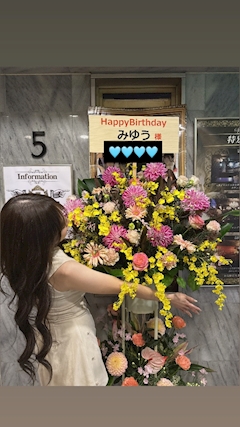 こんにちは🌞みゆうです✨✨ 人生初のスタンド花いただきました🥺💖 キャバ嬢歴3年だけど今までなかった、、!! 去年花出せば良かったって言ってくださって、今年有言実行で嬉しい✨✨ありがとう〜!!