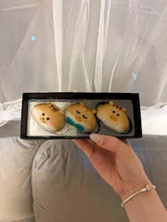 アテナのななせです! 昨日ね、可愛いお菓子もらったの! みてーー! 箱開けたらこの子たちでてきて 思わず可愛い〜って言っちゃった笑 顔が可愛すぎて一瞬食べるの迷ったよね🥹 ちゃんと美味しくいただきます🙏✨ こういう差し入れくれるのって嬉しいよね😌 ありがとうございました🫶🏻