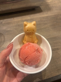 こんばんは!アテナのあいなです🎵 今日います🎀 この前行った焼肉屋さんで食べたアイス🍨 猫のってて可愛かった😻😻 では!