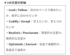 こんにちは! まなみです! 今日はラブタイプ診断やってみました! そもそもラブタイプ診断とは恋愛傾向を16種類のキャラクターに分類する診断です! 4つの診断軸の組み合わせによって導き出された16タイプは、それぞれ独自の恋愛スタイルと相性傾向を持っています。 やってみた結果、私は、、、 忠犬ハチ公でした😂 忠犬ハチ公ってその名の通り、 特徴:一途で誠実。裏切らない安心感を持つ 恋愛傾向:尽くし型で、相手を大切に守り抜く らしく、恋愛において自己犠牲も躊躇わないタイプ🥲 うわーなんか分かるかもと思ってしまった自分がいました🥺 忠犬ハチ公には心の温度が合う、優しくて安心できる相手がいいらしいので、そういう方お待ちしてます🙏 酒タイプ診断というものもやったので近々投稿しようかなーっと思ってます! では👋